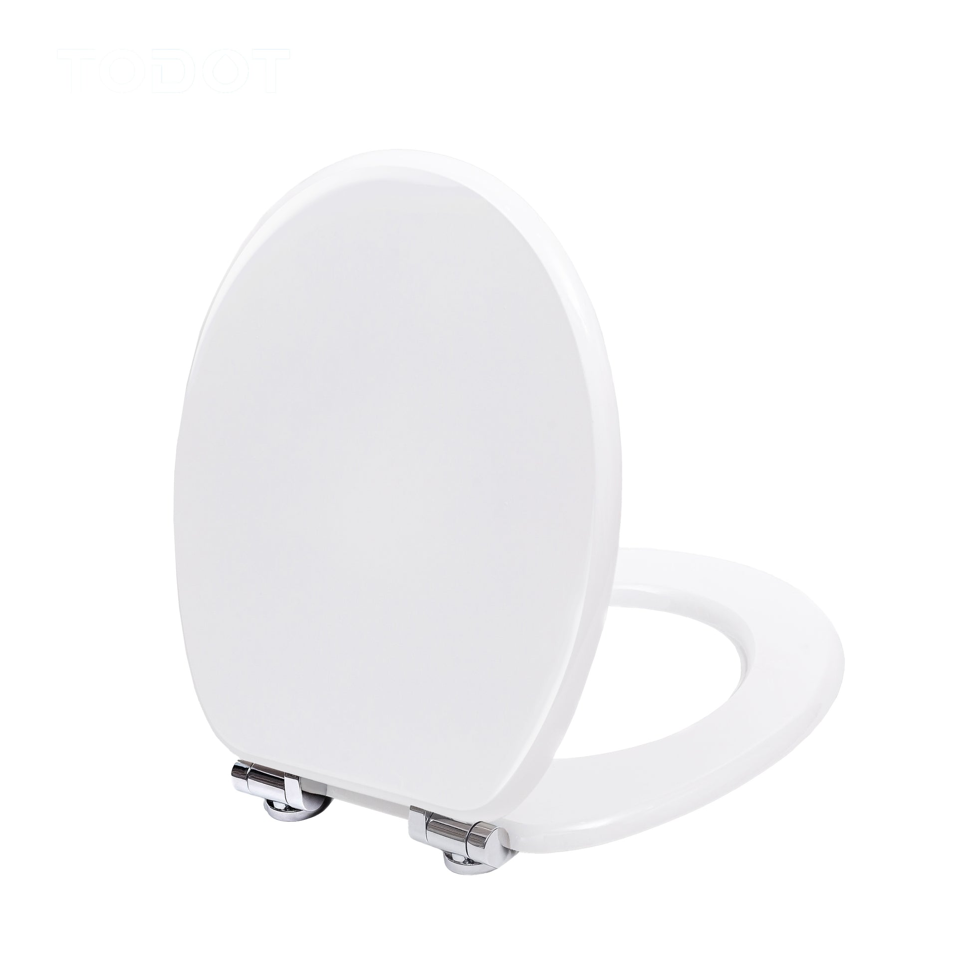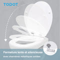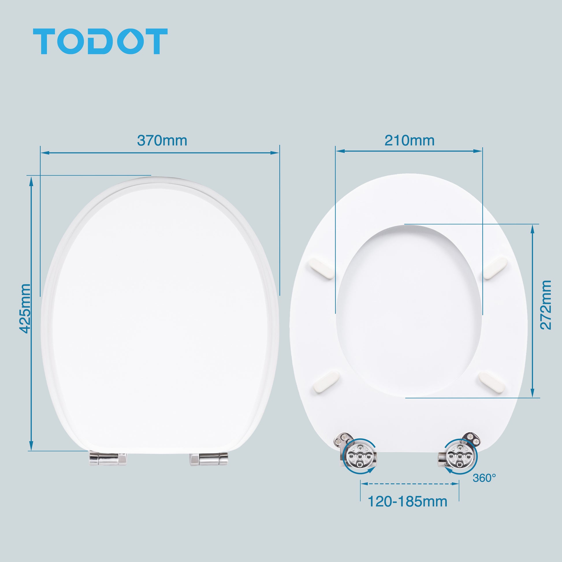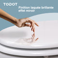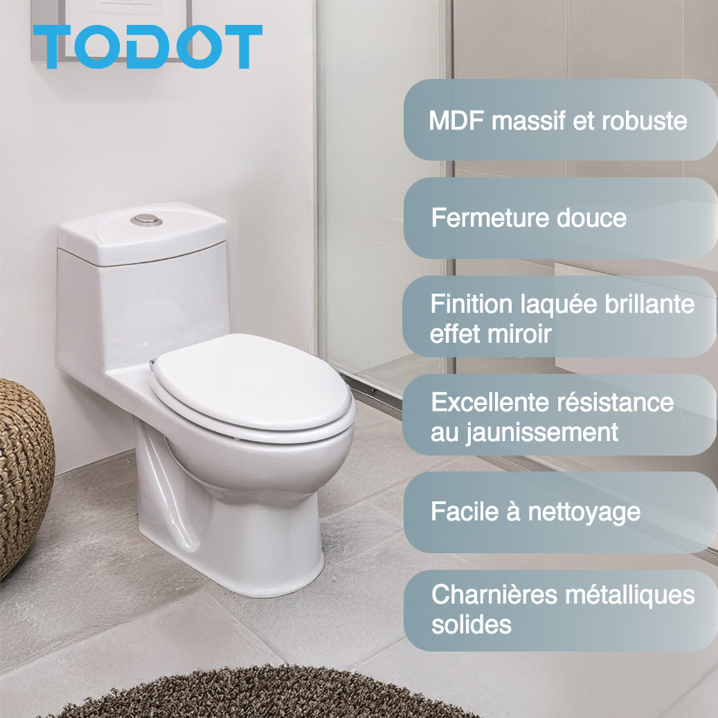 TODOT Abattant WC avec Frein de Chute Silencieux, Lunette de Toilette en Bois MDF, Finition Laquée Effet Miroir, Charnières Inox/Zinc Ajustables, Compatible Cuvette O, Capacité jusqu'à 175 kg (Blanc)