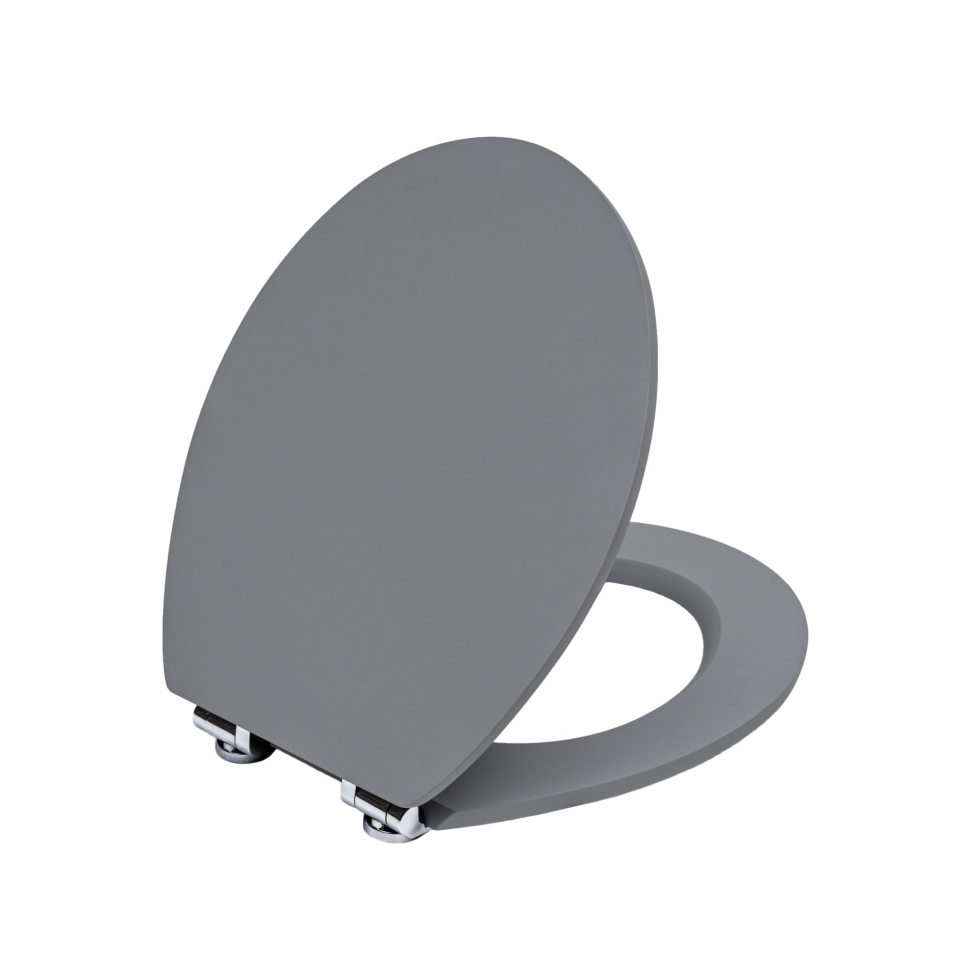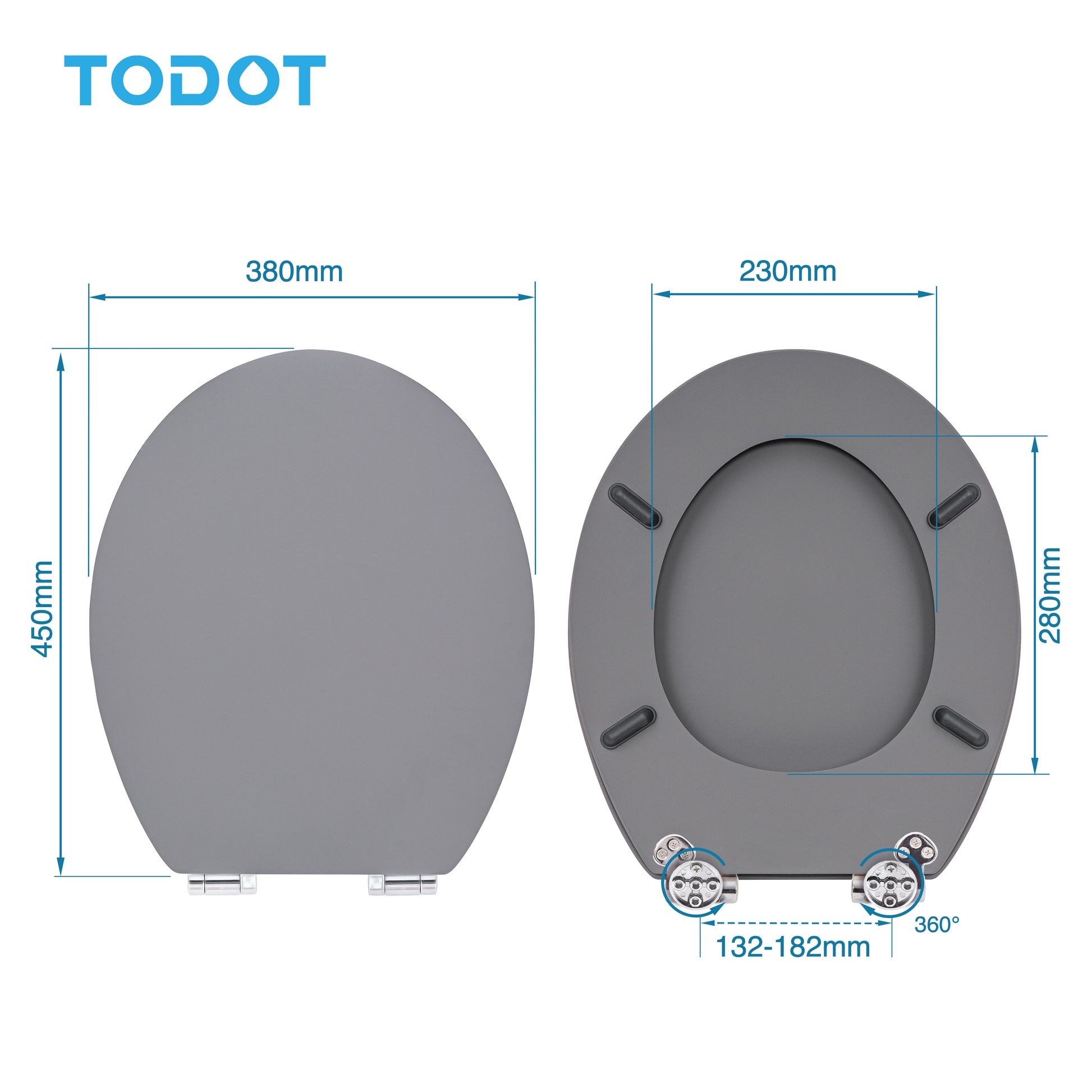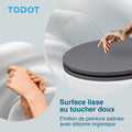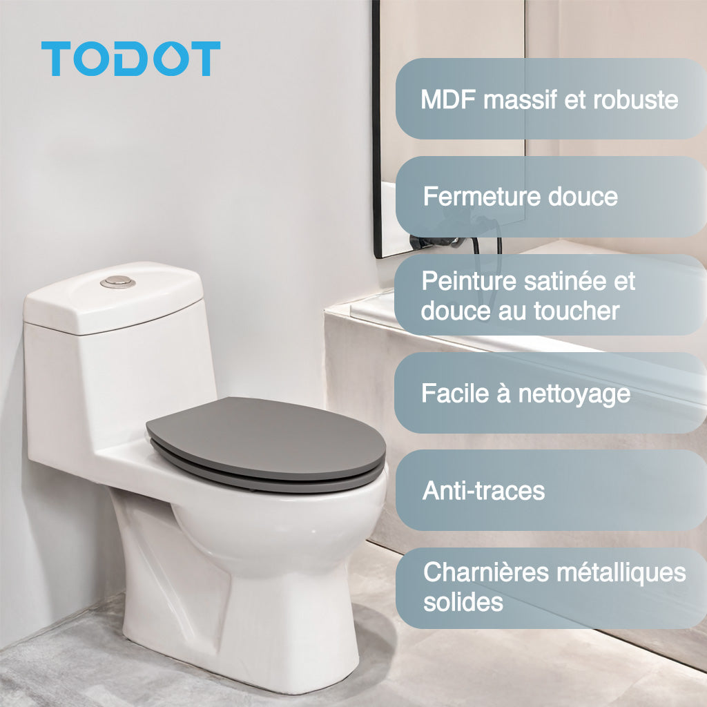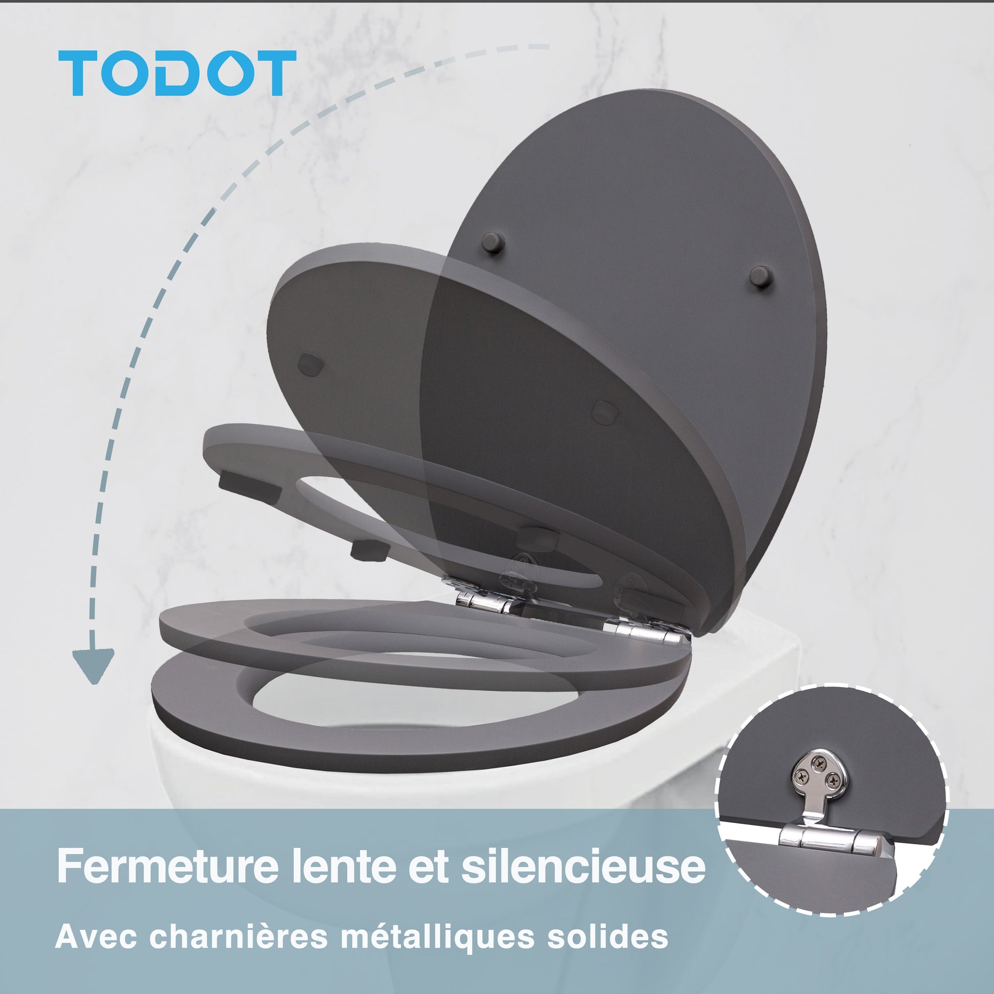 TODOT Abattant WC avec Frein de Chute Silencieux, Lunette de Toilette en Bois MDF, Revêtement Caoutchouc Doux au Toucher, Charnières Ajustables, Compatible Cuvette O, Capacité jusqu'à 175 kg (Gris)