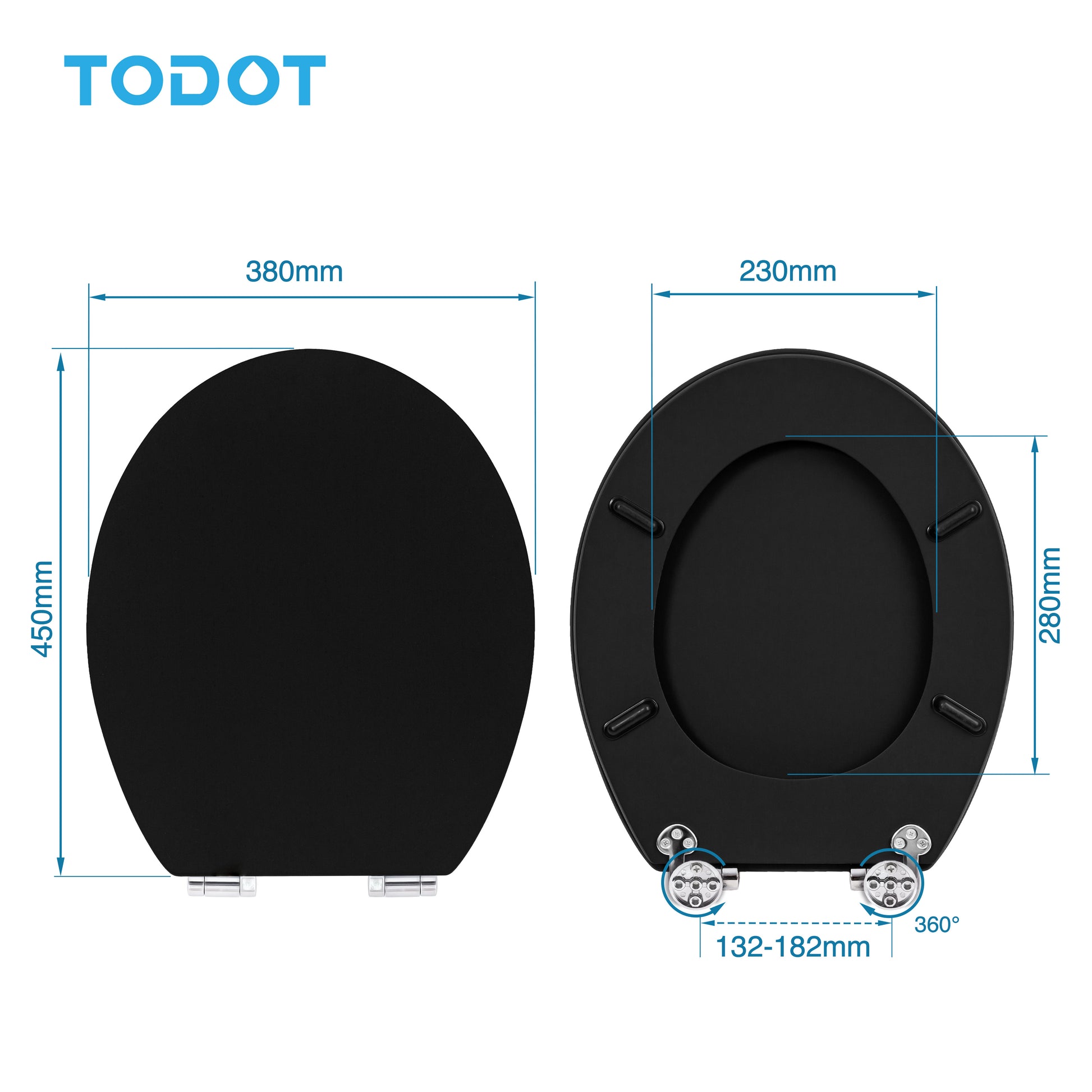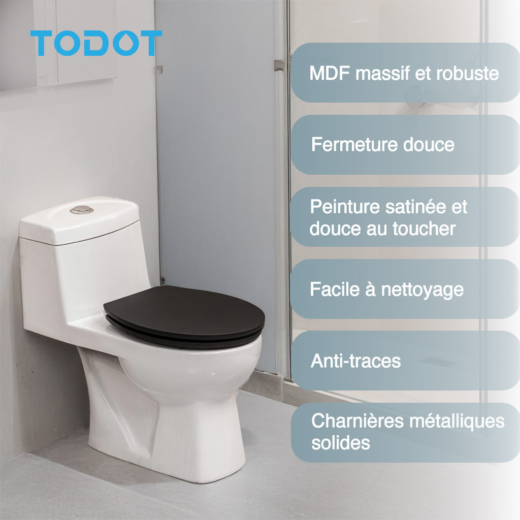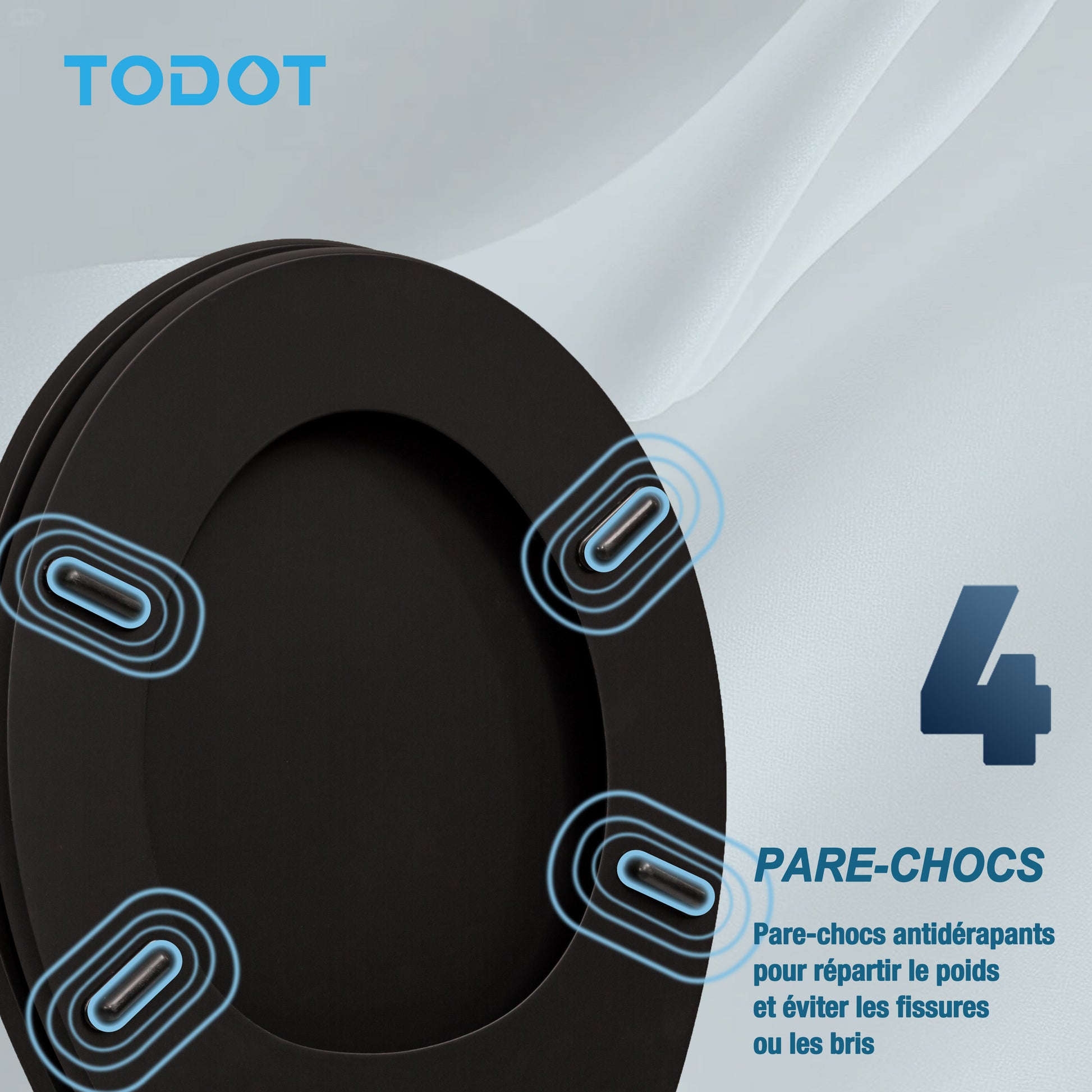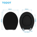 TODOT Abattant WC avec Frein de Chute Silencieux, Lunette de Toilette en Bois MDF, Revêtement Caoutchouc Doux au Toucher, Charnières Ajustables, Compatible Cuvette O, Capacité jusqu'à 175 kg (Noir)