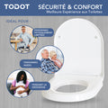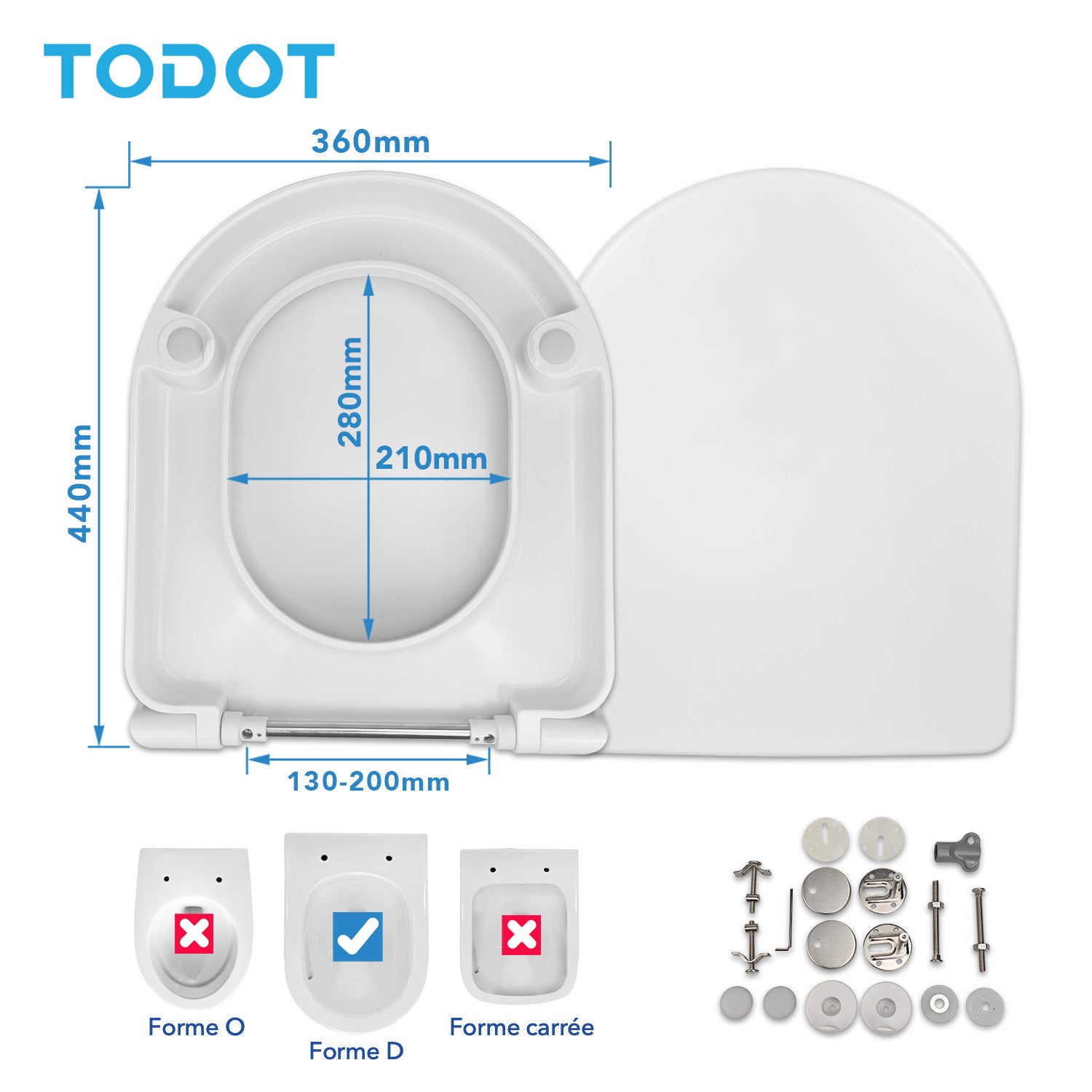 TODOT Abattant WC surélevé 5cm pour Personnes Âgées/Handicapées, Rehausseur WC Siège Toilette en Duroplast, Frein de Chute Silencieux, Charnières Inox Ajustables (250 kg, Universel) (Forme D)