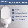 Ce siège de WC permet aux jeunes et aux personnes âgées de s’asseoir confortablement sur les toilettes. Cela est rendu possible grâce à une position d'assise surélevée de 5 cm : plus besoin de s'asseoir trop bas, ce qui facilite le lever.