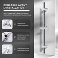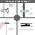 Barre de douche Chromé 70cm, Barre de douche en acier inoxydable avec Support de pommeau de douche pivotant à 360° et Fixations murales ajustables pour S'adapter aux trous de perçage existants